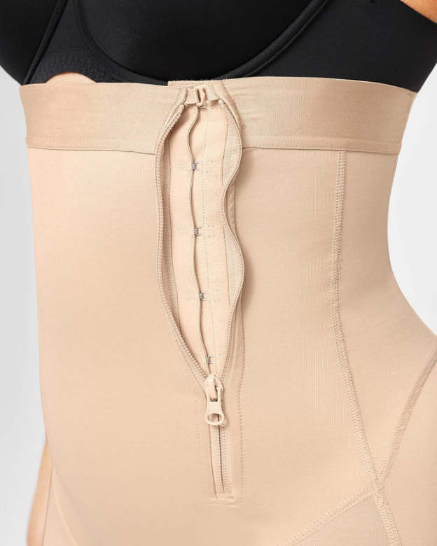 • Built-in steel bones at the back waist prevent rolling and offer support.