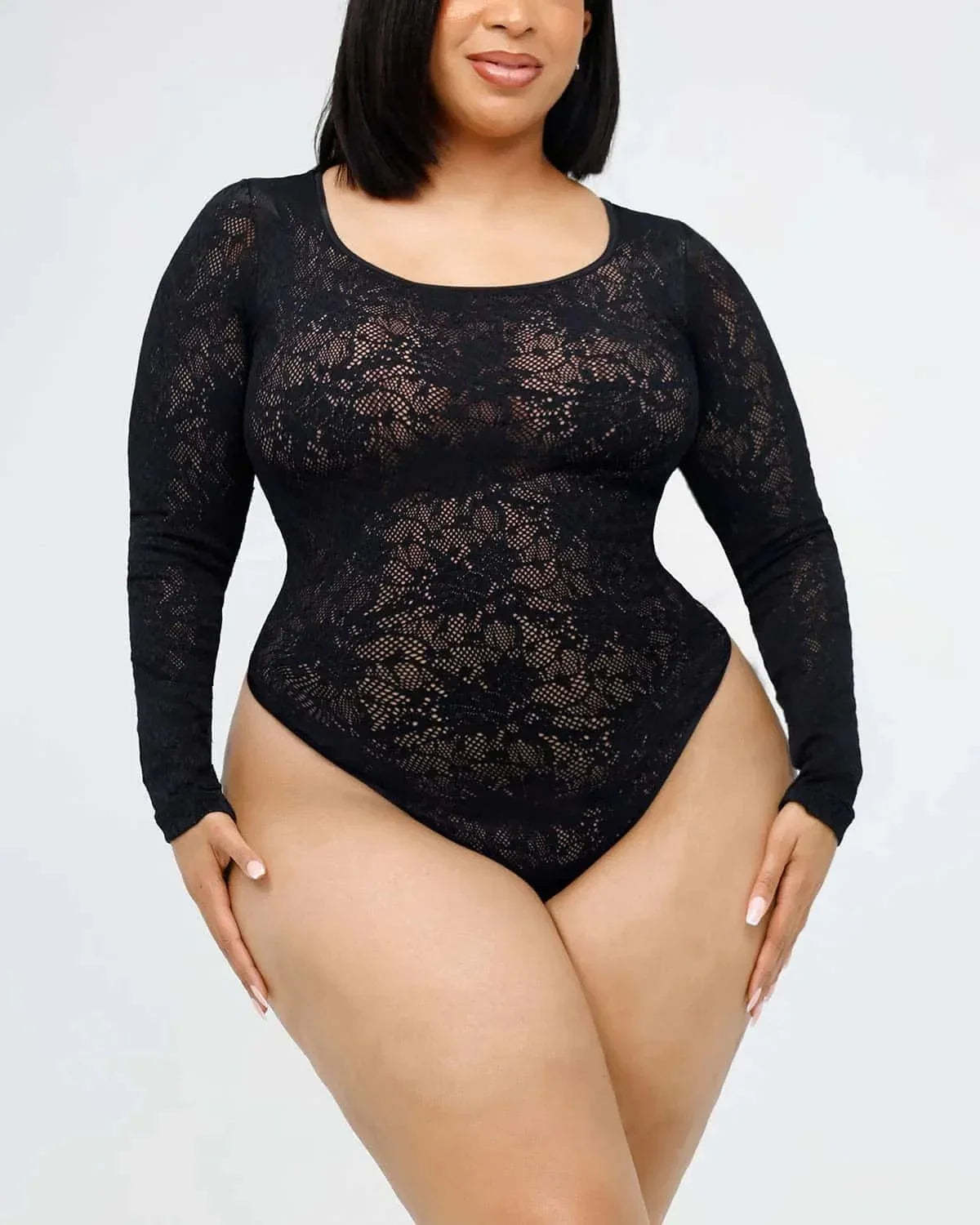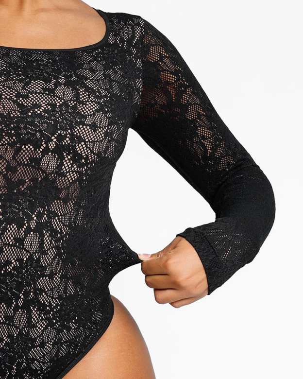 Treat yourself to a sumptuous statement with our exquisite lace bodysuit. With its delicious lace shell and fitted mesh waist panel, the design flatters and shapes your figure, giving you a fabulously playful and confident look. Absolutely essential, this bodysuit will have you looking and feeling like a dream and ready to take any event by storm!